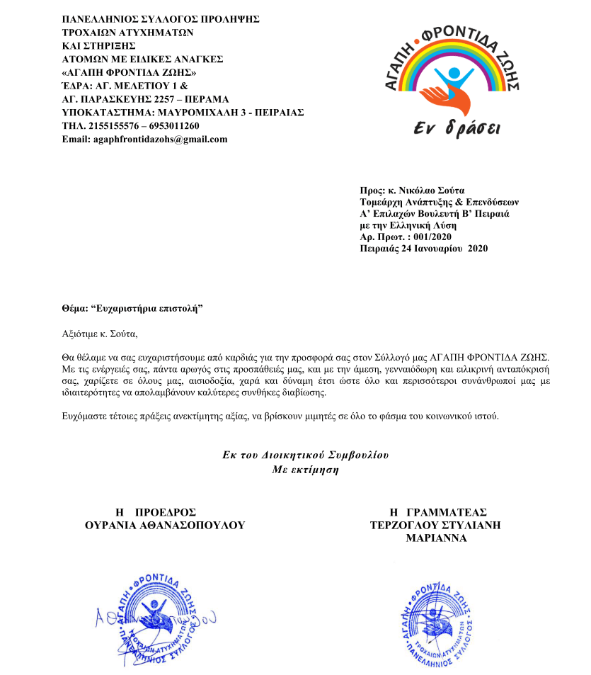 Ευχαριστήριες επιστολές